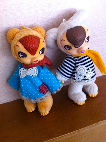 先日引っ張り出したKUMAミニとUSAGIミニにお洋服を作ってみました。