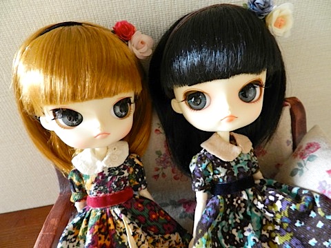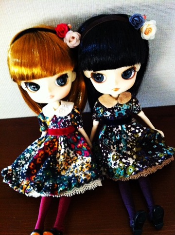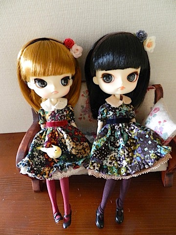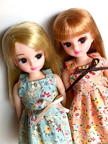 なーんかふたごのようだ、と思ったので色違いのおそろいワンピを作りたくなって作ってみたんですがそれはまた次の記事で。