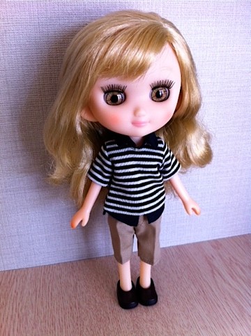 デフォ服がないので、でこニキに作ったラグランTとアゾン23cm用のスカートを着せてみました。