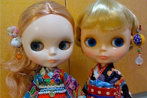 今年はこの子たちの写真で年賀状を作って、人形つながりのお友達や