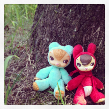 ミニKUMAとUSAGI、木陰でひとやすみ。