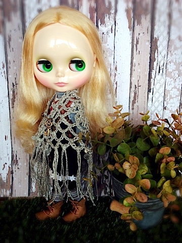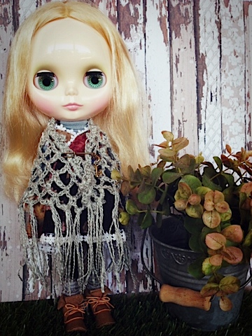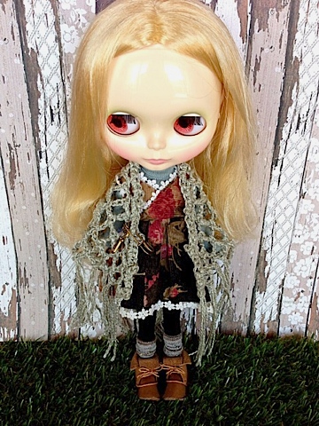ショールは実はキャストさん用で30cmくらいまでの、いわゆる幼SDサイズ、とのことだったんですが30cmのドールならブライスいけるんじゃと思って着せてみたらこれがピッタリで^^