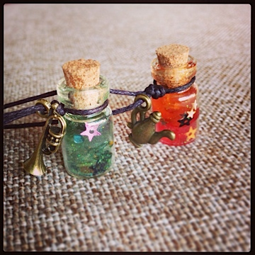 お人形用に何か作りたいなーと思ったので、セリアで売ってる一番小さい瓶に色付けしたレジンと小さいスパンコールとかラメとか入れて固めてみることに。