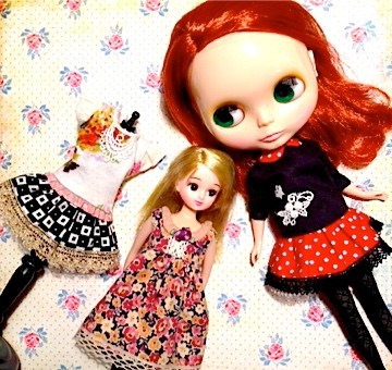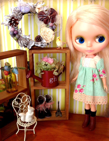私はブライスサイズのお洋服を何種類か、プリザ作家のSuntrap*さんはブライスに合わせて作ったヘアアクセサリーやバッグなどの小物、komomoさんはブライスサイズの靴を作って持ってきて下さいます。