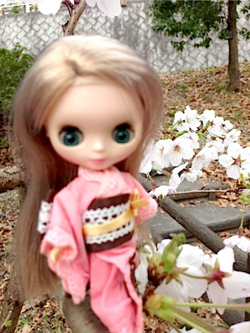 ピンクな着物は桜が似合うと思ったので^^