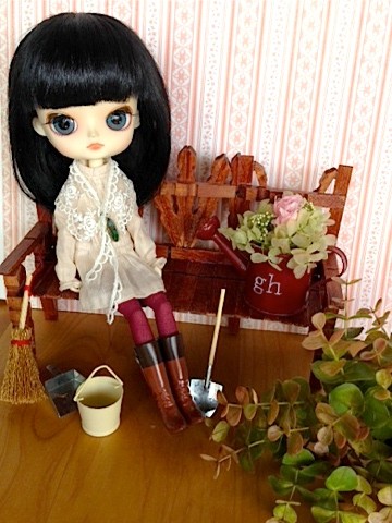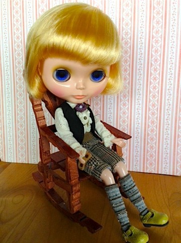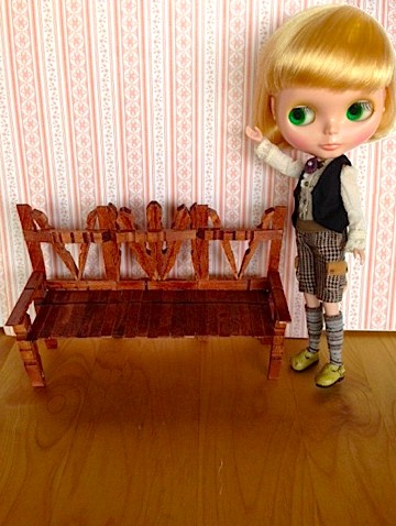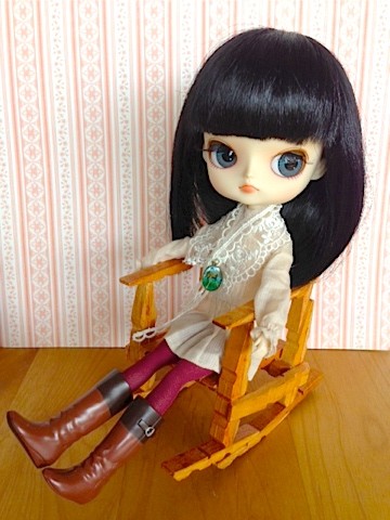 ボンドも乾いて完成したものに早速ブライスを座らせてみました。