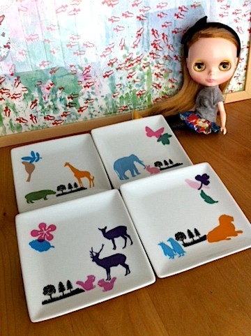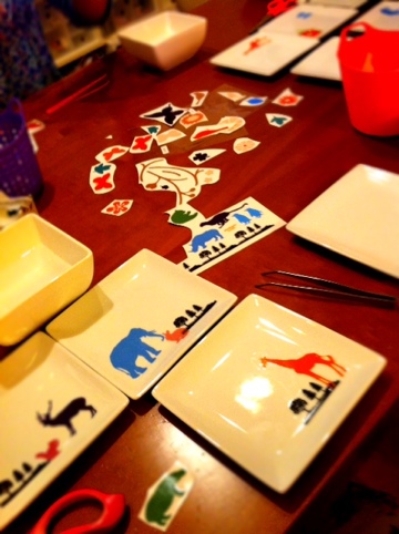 好きな柄の転写紙を選んで配置を考えてひたすらお皿に貼り付けていきます。