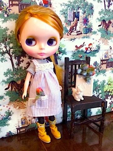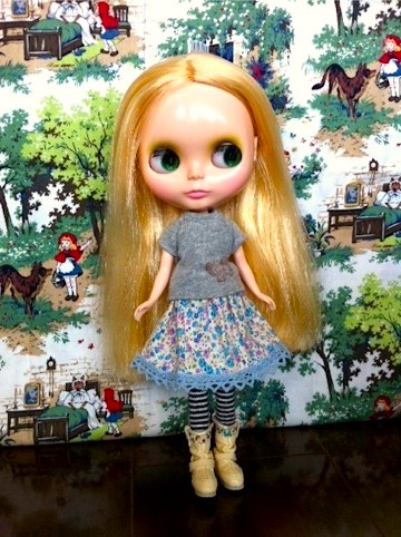 服を作る時間もなかったのでとりあえず以前ブライス用に作ったレーシーなワンピを着せてみたらなかなかいいサイズでした。