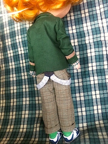 ジャケットとシャツは「はじめてのドール・コーディネイト・レシピ」の型紙を参考にしながら、