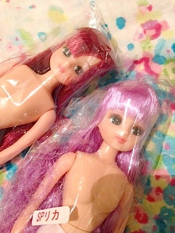 左はお人形教室スペシャルの子で一目惚れてすぐ決まったのですがもうひとりワインレッドのボブカットを探していたけどみつからなくて、まあ自分でカットすればいいかなーと右のロングヘアの子にしてみました。